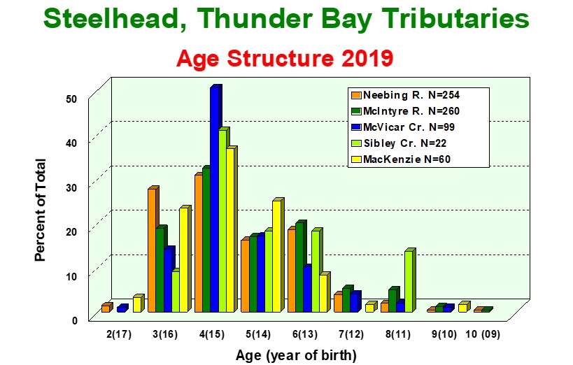 The information gathered from the Co-operative Angler Program provides the Ontario Ministry of Natural Resources and Forestry (OMNRF) with insights into Steelhead year class strength, recruitment, exploitation rate, size-at-age information, movement patterns, ecological interactions with other species and trends in population size. Of particular importance are the population estimates generated by the use of mark-recapture techniques (often referred to as ‘clipping’) on the McIntyre, Neebing, McVicar, MacKenzie and Portage Creek tributaries. Marking fish with a fin clip is an established and accepted fisheries assessment tool that shows little adverse effect to the marked fish.