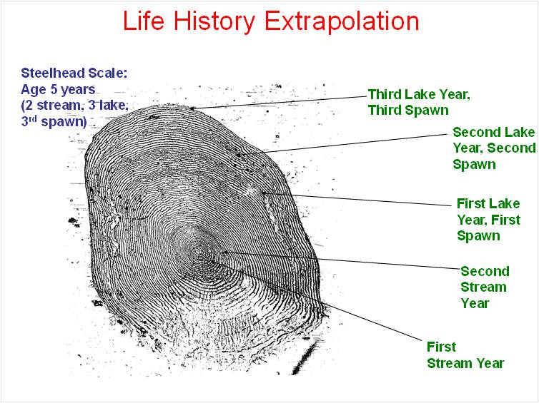 In recent years, adequate numbers of steelhead scale samples have been collected from a few of the more popular angling rivers. The data collected through this program enables biologists to examine various fishery or population dynamics such as, the age and size structure, the repeat-spawning rate (i.e. the number of rainbow trout that have spawned more than once in their lifetime), the ratio of first-time spawners (i.e. "maiden" spawners) to repeat spawners, as well as life history strategies of each sampled fish. Steelhead Assessment Reports created using data collected from the Co-operative Angler Program dating back to 2008 are available for viewing on this website.