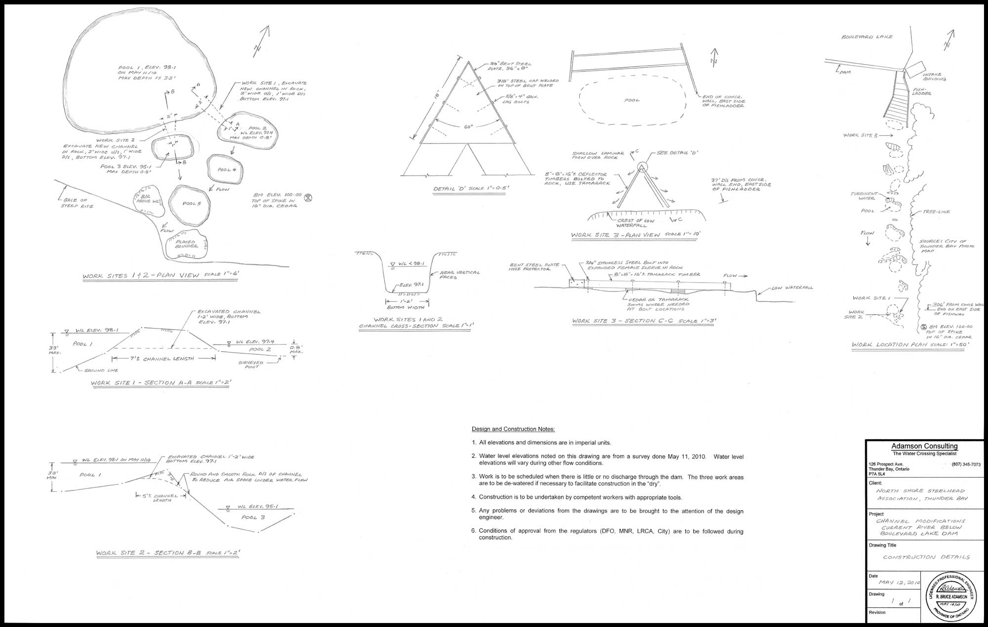 As of August 17, 2010 the NSSA has received all the necessary approvals to proceed with modifications to the river bed in the Current River. This small project will improve migration corridors during low water flows. The work will entail the removal of a small amount of rock on the cliff which will allow migrating fish another route to follow when ascending this partial barrier. Also, two logs will be installed between two of the pools upstream from the cliff in an effort to allow movement from pool to pool.